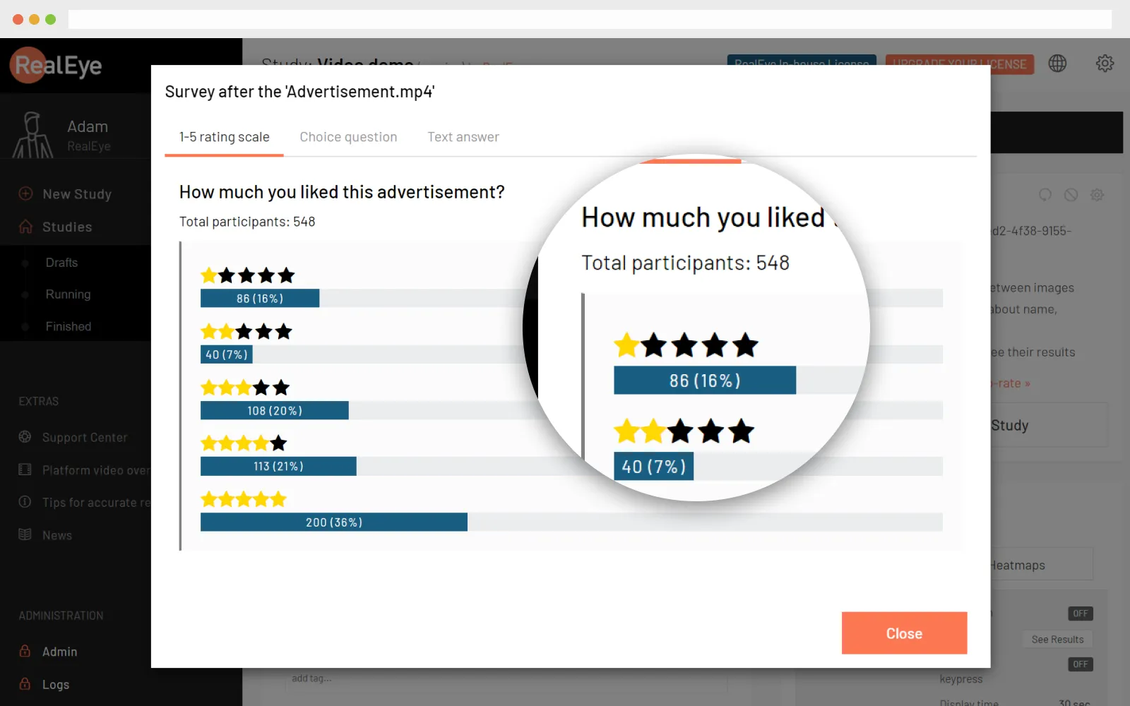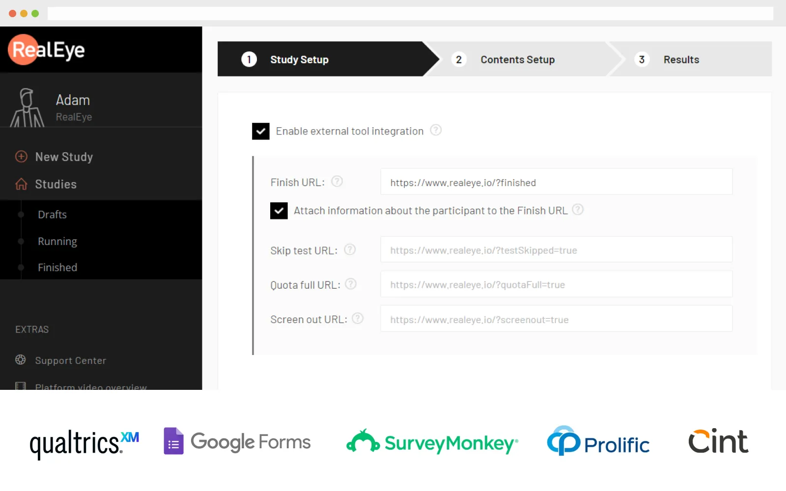 RealEye Dashboard is designed to be intuitive and useful at the same time. It is divided into three main sections, which are crucial while running any research: setting up the study, fielding study with the data, and last but not least, data analysis. A study can be reverted to any of these states to make some adjustments at any time.