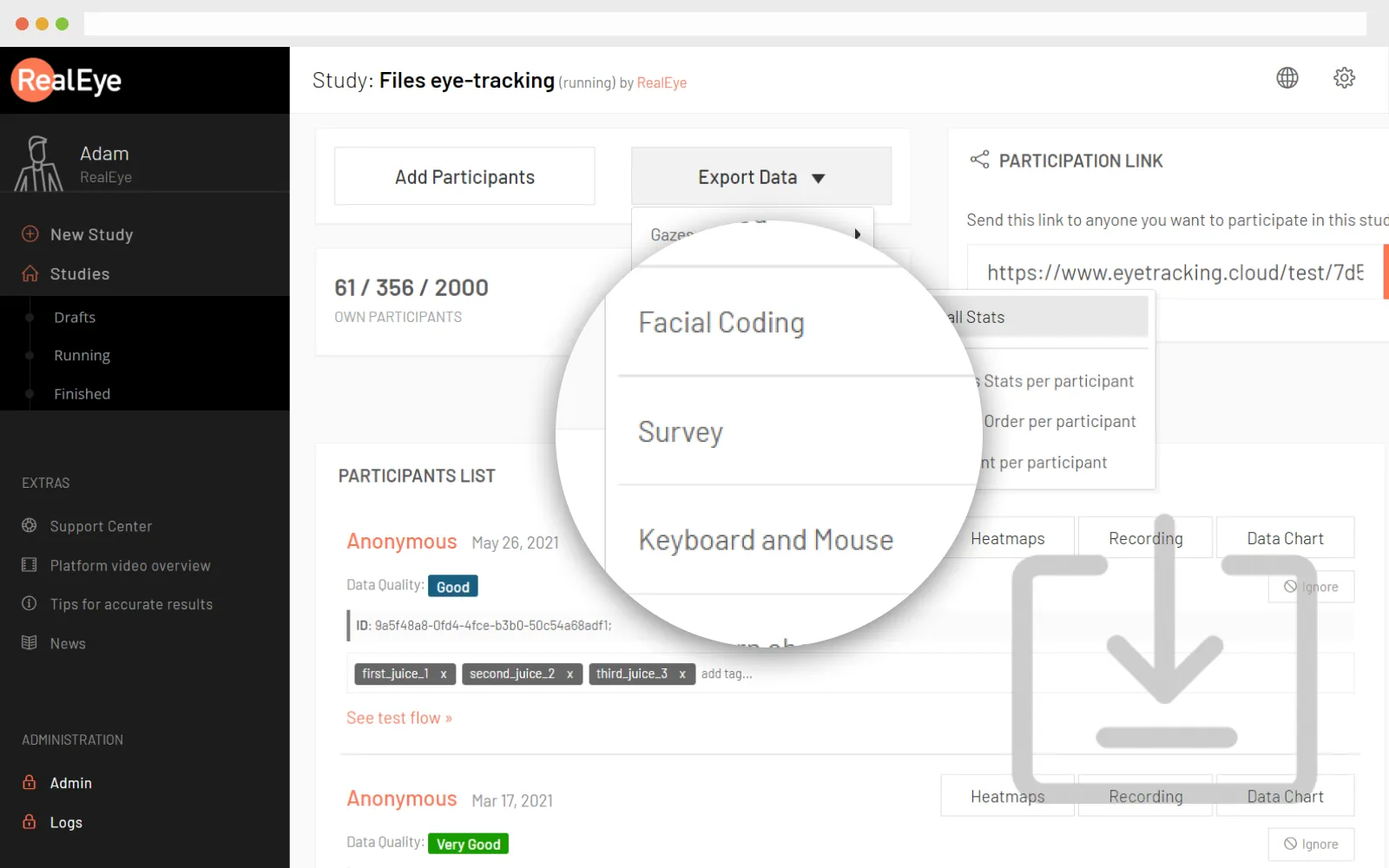 There's no better way to learn what your participants think and their declarative preferences than asking them. This is why RealEye allows you to add a layer to your research - follow-up questions. Choose from various questions and build surveys that will enable you to collect and analyze the data on an individual and aggregated level.