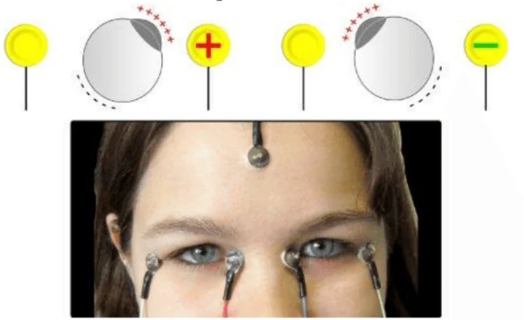 This methodology is based on two pairs of electrodes placed on the skin around the eyes. Two dipoles, negative at the retina and positive at the cornea, generate an electric potential. During the eye movement from the center towards the periphery position, the retina approaches one electrode and the cornea approaches the opposing one. This causes changes in the potential fields that can be translated to eye movements.