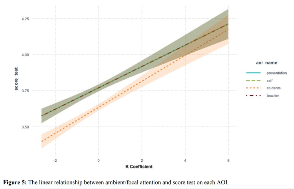 The last analyzed aspect was the relation between K-coefficient (ambient/focal attention) and test score. The average K value significantly predicted the test score. The more focal attention, the higher score was achieved.