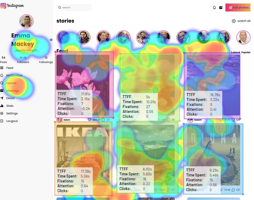 Using Chat GPT is not always a good idea, so instead of releying on predictie AI heatmaps try RealEye with Instagram, Facebook, TikTok or other social media platform mockup.
